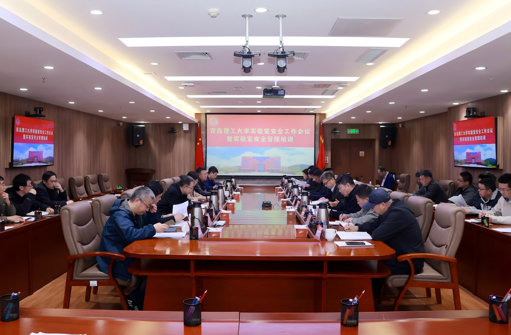 为贯彻落实上级和学校相关要求,进一步压实实验室安全管理责任,防范化解安全风险隐患,切实提升实验室安全治理能力和管理规范,4月9日,学校在黄岛校区召开实验室安全工作暨实验室安全管理培训会议。会议由资产与实验室管理处处长徐世峰主持,校党委常委、副校长陈韶娟出席会议并讲话。相关职能部门负责人、各教学院部及临沂校区分管领导及实验室管理人员参加会议。